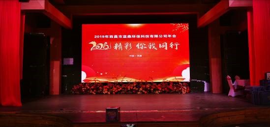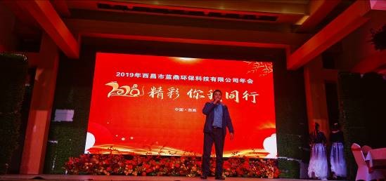 音樂漸漸停止,屏幕悄然變化,伴隨著激昂的音樂,主持人盛裝登場(chǎng),在表達(dá)了對(duì)在場(chǎng)嘉賓的歡迎以及對(duì)身處生產(chǎn)一線無(wú)法到來(lái)人員的感謝后,西昌藍(lán)鼎執(zhí)行總經(jīng)理李富勇走上舞臺(tái),為本次年會(huì)做開幕詞,總結(jié)了過去一年的種種,表達(dá)了對(duì)公司全體成員一年努力的肯定,闡述了未來(lái)一年濕法脫硫脫硝項(xiàng)目建成落地所要面對(duì)的各種挑戰(zhàn)。隨后是西昌藍(lán)鼎生產(chǎn)部部長(zhǎng)孫小剛上臺(tái),為大家宣布2019年度藍(lán)鼎“十大事件”。隨后本次年會(huì)文藝表演正式開始。