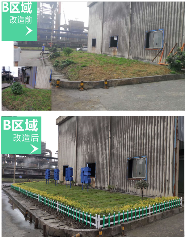9月內江藍鼎成立了以生產(chǎn)部副部長曾中東為組長,副部長陳威、人力行政部吳丹為組員的綠化專項小組。從綠化公司的對比選擇到現(xiàn)場進行實地測量制定設計方案,從廣告字、圍欄、草坪、苗木、花草的對比選擇到工期監(jiān)督,綠化專項小組都親力親為。最后確定利用球團現(xiàn)有花草材料移栽等方式對燒結1#脫硫塔AB兩塊區(qū)域進行集中改造的方案。改造歷時半個月。改造后的現(xiàn)場:茂盛的草坪、四季花期的含笑、三角梅、整齊的迎賓欄,現(xiàn)場比以前更整潔了,環(huán)境更美了。