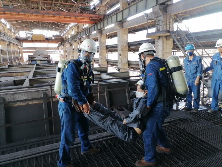 6月18日9時30分西昌藍(lán)鼎和西昌鋼釩煉鐵廠聯(lián)合組織煤氣中毒演練,西昌藍(lán)鼎安排黃曉明、田婷、謝波、安林、周福等人參加。煉鐵廠安全主管敬瑞給參加演習(xí)的人員講解了此次演習(xí)的流程、演習(xí)注意事項、安全預(yù)防措施、煤氣中毒后正確施救的方法、空氣呼吸器的正確使用方法。