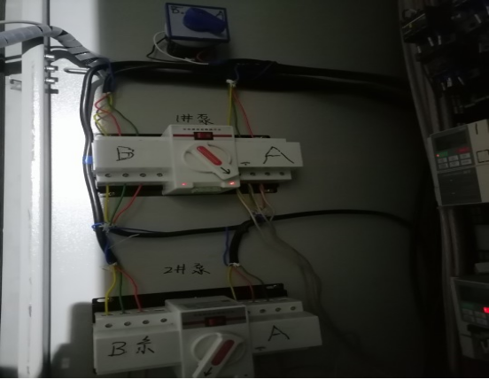 新采購的尿素水解裝置到廠后,檢修人員隨即開始安裝工作,在大家的共同努力下10月25日安裝完畢。接著開始進入調(diào)試階段。為了實現(xiàn)主備用系統(tǒng)的4臺變頻器都可以控制兩臺尿素溶液進料泵電機,電儀人員創(chuàng)新采用了兩臺雙電源自動切換開關,自動切換主備用系統(tǒng),從技術措施上避免了誤操作。次日完成調(diào)試工作,等待脫硝系統(tǒng)停機后對接切換管道后就可以投入運行。
