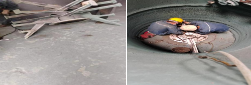 威遠藍鼎檢修班組現(xiàn)場測量刮刀尺寸,在現(xiàn)有磨損設備基礎上進行維護保養(yǎng),對閃蒸所有固定框架進行加固處理,生產(chǎn)、檢修班組在運行上加強閃蒸主機運行點檢和潤滑工作,確保備件到廠前穩(wěn)定運行,降低潛在風險,在公司采購大力支持下,3月底老區(qū)閃蒸刮刀順利到廠。